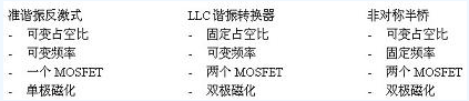 图1:准谐振、LLC和非对称半桥拓扑的比较