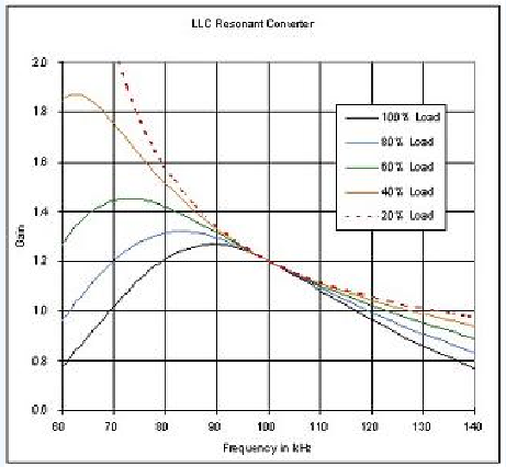 图2比较了两种拓扑的增益曲线。为便于说明,我们假设需要支持的输入电压为110V和220V。对于非对称半桥拓扑,这不是问题。在我们设定的工作条件下,220V和110V时其增益分别为0.2和0.4。在220V时,效率较低,因为磁化DC电流随占空比减小而增大。对于LLC谐振转换器来说,最大增益为1.2,要注意的是满负载曲线非常接近谐振。0.6的增益将导致频率极高,系统性能很差。总言之,LLC转换器不适合于较宽的工作范围。通过对漏电感进行外部调节,LLC转换器可以用于欧洲的输入范围,但代价是磁化电流较大;若采用了PFC前端,它的工作最佳。而非对称半桥结构在输入端带有PFC级,因此电路可工作在很宽的输入电压范围上。