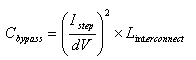 首先,估计电源和负载之间的互连电感和电阻的大小。这种互连阻抗(LINTERCONNECT) 形成一个旁路电容器 (CBYPASS) 低通滤波器。我们假设电源输出阻抗较低。利用该低通滤波器的特性阻抗 (ZO)、负载步进值 (ISTEP) 和允许电压波动(dV),建立旁路滤波器要求(方程式1-2):