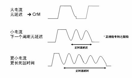 如图3所示,安森美半导体开发的CCFF架构的定时器仅控制死区时间,利用定时器对应电流电平调节死区时间,反走频率限制为>20 kHz,具有市场上领先的性能。