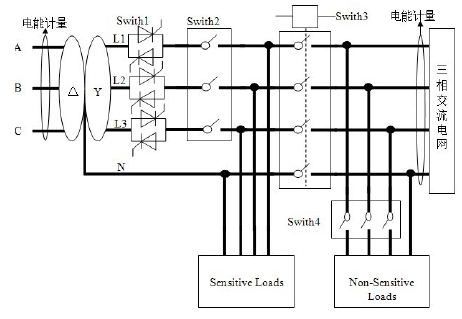 为了实现微网逆变器、负载、电网间的连接,当电路出现故障,需要快速的切换,故电路中使用了静态开关(晶闸管),交流接触器,空气开关。