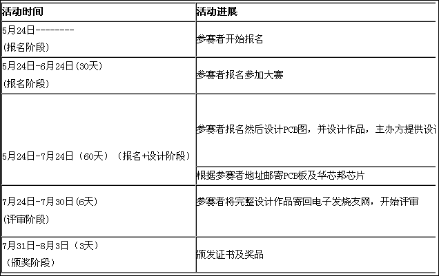 3、参赛者用华芯邦指定芯片和设计理念设计参赛作品?! ?br />