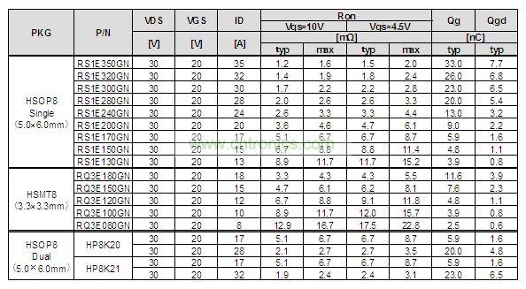 日本知名半导体制造商罗姆(总部位于日本京都市)面向服务器、笔记本电脑以及平板电脑等所使用的低耐压DC/DC转换器,开发出了功率MOSFET。新系列的产品阵容为耐压30V的共16种产品。罗姆独家的高效特性,有助于各种设备的DC/DC电源电路实现更低功耗。另外,根据不同用途提供3种小型封装,可减少安装面积,更加节省空间。前期工序在罗姆的总部(日本京都市),后期工序在ROHM Integrated Systems (Thailand) Co., Ltd.(泰国),从2012年4月开始出售样品(样品价格30~50日元/个),从5月份开始以月产100万个的规模进行量产。