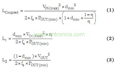 方程式 1 到 3 表明了耦合电感和非耦合电感的电感计算过程。