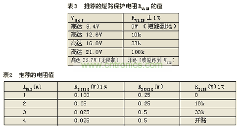 VLIM引脚到GND之间连接的外部电阻值可以决定5个充电器输出限压值中的任一个(见表3)。这种用硬件实现限压值的方法是一种比较安全的措施,它是不能被软件方式所取代的。