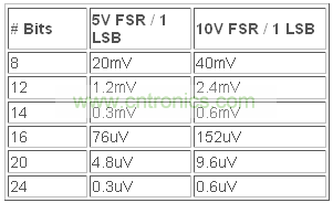 在今天的医疗、测试测量以及工业控制市场上,随着数据转换器分辨率的提高,或者说随着信号满量程范围的减小,对于更高噪声性能的需求变得越来越重要。表 1 显示了随着数据转换器分辨率的提高,1LSB 电压阶跃减小?;蛘?,随着满量程电压摆动量级的减小,1 LSB 电压阶跃减小。随着 1 LSB 电压值减小,电源产生的噪声影响增加。电源产生的噪声增加了信噪比 (SNR),从而降低了数据转换器的有效分辨率。例如,由于电源产生的过度噪声,一个 16 位数据转换器会表现得像一个 14 位数据转换器。具体应由设计工程师来决定如何进行噪声和精确度之间的折中。