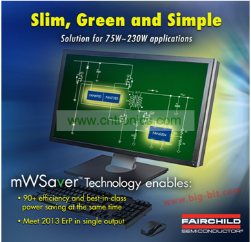例如,飞兆半导体提供的AIO解决方案非常适合75W~230W功率范围应用,包括FAN6920MR集成式临界导通模式PFC和准谐振电流模式PWM控制器产品;FAN7382栅极驱动器;以及用于反激式拓扑和正激续流整流的FAN6204次级端同步整流(SR)控制器。而且,这些器件都具有同级最佳的无/轻负载功耗,能够实现达到2013 ErP标准的设计,并可省去LLC解决方案所需的附加电路。[page]