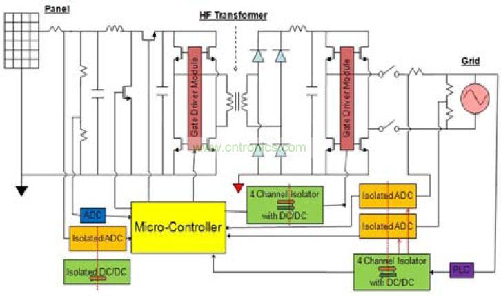 导读:在太阳能电池板以外,电子元件(如PV逆变器)是导致高成本的主要元件。出于安全和可行性考虑,并网PV转换器把获得的直流与交流网相隔离。隔离的作用通常是满足安全法规的要求,防止直流注入交流网,因为结果可能会影响配电变压器和传统的瓦特小时电表。本文旨在讨论PV逆变器中的信号和电源隔离需求,探讨如何利用微变压器集成隔离功能以提高系统性能和可靠性、降低系统尺寸和成本。