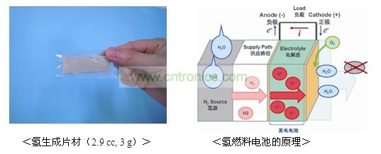 此次开发的氢燃料电池,使用了加水即可产生氢的固体,可利用水的合成进行发电,因此,发电时的生成物仅仅是水(水蒸气),不会产生二氧化碳和有害物质(挥发性有机化合物:VOC)。废弃时亦可作为一般垃圾处理,是极为环保的燃料电池。