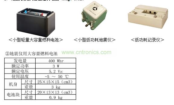 2)地震仪用大容量燃料电池(3kg、5.6L)