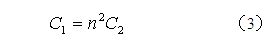 设次级线圈的分布电容为C2,等效到初级线圈后的分布电容为C1,则有下面关系式: