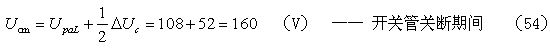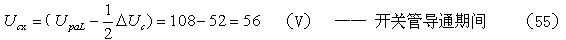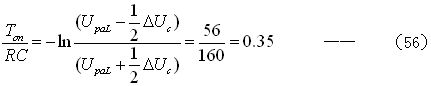 当考虑电阻R对电容器C充电的分流作用,以及开关管由导通到完全关断期间,漏极电流对电容器C充电的分流作用时,根据(36)式,假设分流系数r = 0.5 ,则(52)式还可改写为: