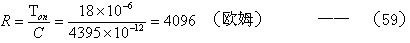 把由(52)和(53)式求出电容器C的结果,以及根据(25)式求出的Ton值,代入(57)式后即可求出电阻R的值。