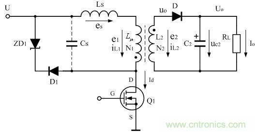 电压之中,电容器C吸收尖峰脉冲电压增量