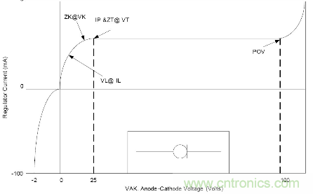 它在某一个电压范围内有一段恒流区间, 在这个区间, 流经的电流几乎不变, VL为到达IL的电压值, IL大约为0.8Ip.