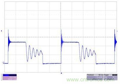 图2 SEPIC极大地降低了EMI和电压应力。上图没有C1,而下图则安装了C1。