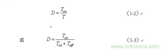 式中Ton为控制开关K接通的时间,T为控制开关K的工作周期。改变控制开关K接通时间Ton与关断时间Toff的比例,就可以改变输出电压uo的平均值Ua 。一般人们都把 称为占空比(Duty),用D来表示,即: