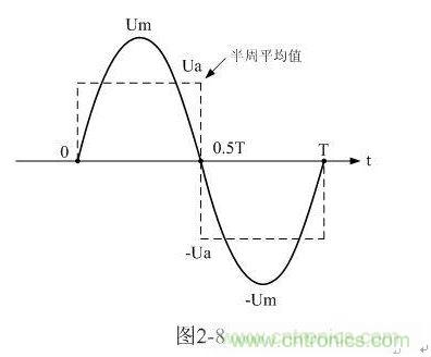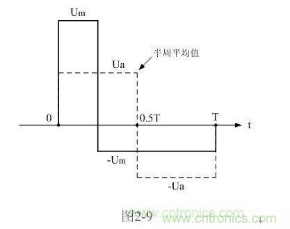 顺便说明,这里的半周平均值,并不是一般意义上的正、负半周波形完全对称交流电压正半周、或负半周的平均值,这里的半周平均值是泛指整个周期中的正半波电压或负半波电压在半个周时间内的平均值。如图2-9所示。另外,(2-19)、(2-20)式中的半周平均值Ua和Ua-与第一章中(1-70)、(1-71)式定义的半波平均值Upa和Upa-也稍有一点差别,Ua和Ua-与Upa和Upa-的差别,主要是在分母上。
