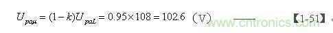 假设漏感Ls与开关变压器初级线圈的电感L的比值K为5%,根据【1-42】式可求励磁电感产生的反击输出电压 eu的半波平均值 Upau为: