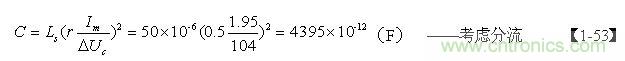 把【1-53】、【1-58】式的计算结果:C = 4395P,Ton = 18uS ,代入【1-57】式: