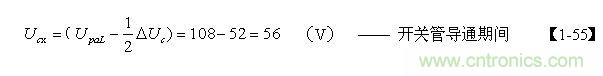 当考虑电阻R对电容器C充电的分流作用,以及开关管由导通到完全关断期间,漏极电流对电容器C充电的分流作用时,根据【1-36】式,假设分流系数r = 0.5 ,则【1-52】式还可改写为: