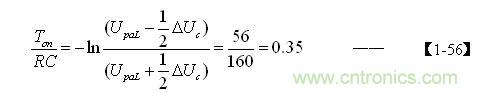 当RC的值与开关管导通时间Ton完全相等时,【1-46】式的值正好等于0.37,与【1-56】式的结果非常接近。或者当纹波电压