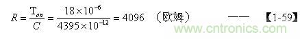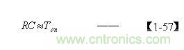 把由【1-52】和(2-73)式求出电容器C的结果,以及根据【1-25】式求出的Ton值,代入【1-57】式后即可求出电阻R的值。