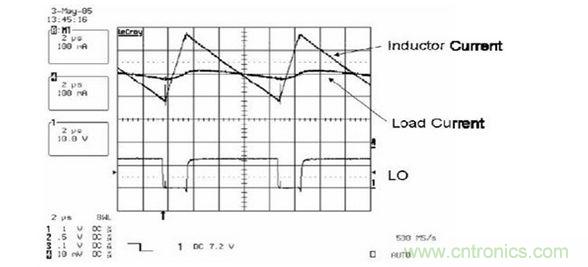 下图说明了电感减小时,在输出电压的变化范围内,负载电流的波动明显增大。