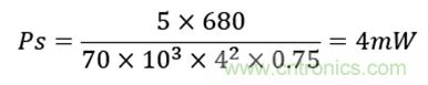 本次设计中,输出功率为 5W,最大开关频率设计为 70KHz。所以,可以计算得,理论待机功耗为: