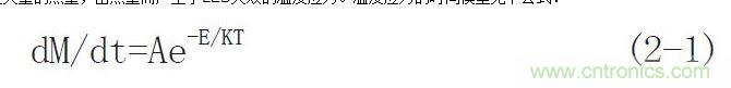 目前,主流的LED驱动是使用交变电源作为电源输入的,对于一些大功率的LED驱动电路,其变压线圈会产生大量的热量,由热量而产生了LED失效的温度应力。温度应力的时间模型见下公式: