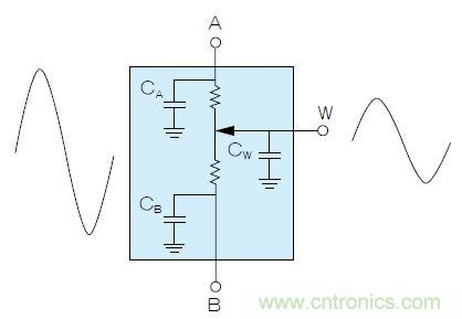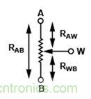 以数字电位计代替R1和R2时,需考虑一些问题。数字电位计内部有两个电阻串(RAW和RWB),如图4所示。