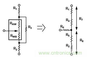 使用串并联组合对电位计进行线性化可能十分复杂,如图10中的等效电路所示。