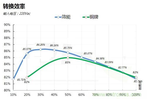 首先我们随机选择了一款电源,在没有使用延长线的时候,分别测试电源的转换效率、电压偏离,然后接上延长线,同时测试数据进行对比。