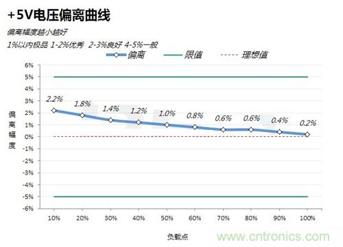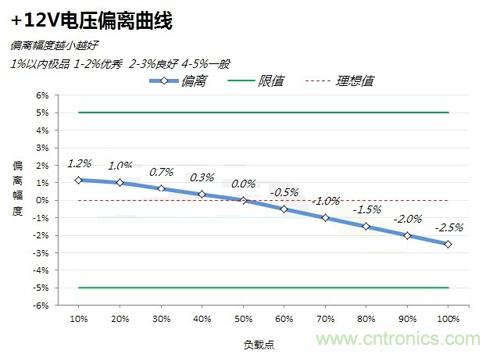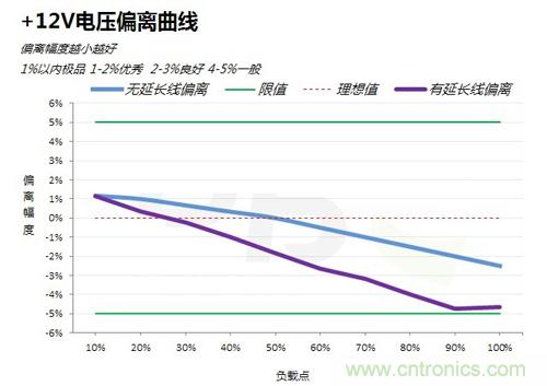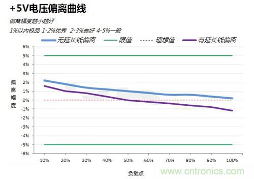 这是一款入门级电源的整体表现,效能就是通牌水准,而电源电压偏离也是处于一个比较好的水平,下面我们接上延长线去测试。