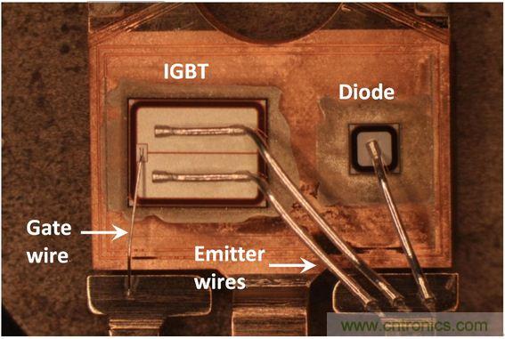 图1:贴装在TO-247封装引线框上的IGBT及二极管