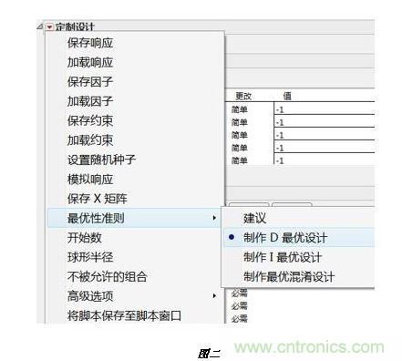 筛选设计是指在问题研究的早期,潜在的候选因素很多,如何有效地大规模降低实验次数而又准确地找到少数几个影响发动机性能的关键因素。具体的实现手段有两种:一种是经典的实验设计方法,如部分析因设计、Plackett-Burman设计等(如图一所示);另一种是高级的实验设计方法,如D最优设计等(如图二所示)。