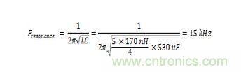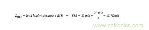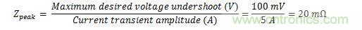如果电源输出阻抗在LC电路谐振频率上高于 Zpeak,必须提高电容,以降低储能电路谐振频率,直至满足上述条件。