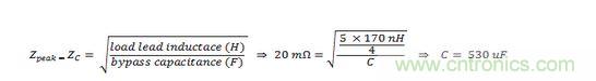 根据下面的表达式,确定负载导线网络的指定峰值阻抗和旁路电容: