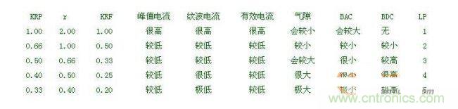 KRP的意义:只要原边电感电流处于连续状态,都称之为CCM模式。而深度CCM模式(较小纹波电流)与浅度CCM模式(较大纹波电流)相比较,电感量相差好几倍,而浅度CCM模式与BCM、DCM模式的各种性能、特点可能更为相似。显然需要一个合适的参数来描述所有电感电流的工作状态。通过设置KRP值,可以把变压器的电感电流状态与磁性材料、环路特性等紧密联系起来。我们也可以更加合理的评估产品设计方案,例如: