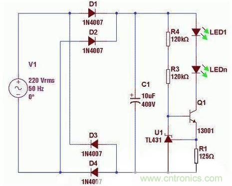 图1:利用单个TL431恒流的示意图