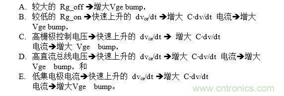 因素C、D和E与工作条件相关。为了最小化穿通电流和产生的“Vge bump”,应该在最坏的C、D、E条件下考虑因素A和B。