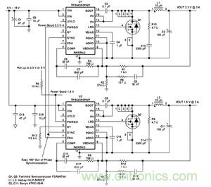 TPS54350是具有内部MOSFET的高效 DC/DC转换器,连续输出电流为3 A时,支持输入电压范围为4.5~20V,可使设计人员直接通过中压总线(而非依赖额外的低电压总线)为DSP、FPGA和微处理器供电。TPS54350构成的DC/DC转换器效率高达90%以上,非常适用于低功耗的液晶显示屏、监视器、液晶电视机、硬盘驱动器、视频图像卡以及9V或12V墙式适配器的负载稳压装置。TPS54350的输出电压可调低至0.891V(精确度为1%);PWM 频率固定为250kHz、500kHz或250~700kHz的可调节范围,还具有完善的?;すδ?。因此,TPS54350符合系统设计要求。