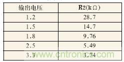 表1为当R1为10kΩ时,几种输出电压下R2的推荐值。