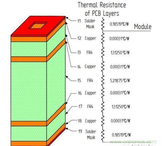 图6:连接电路板各层的通孔段的热阻