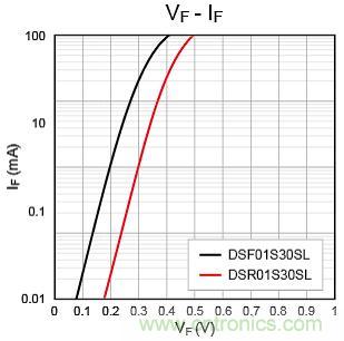 图5:东芝肖特基二极管DSF01S30SL和DSR01S30SL的特性曲线