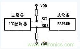 SDA和SCL为双向的,通过外部+3.3 V上拉电阻连接至正向电压。当总线处于空闲状态时,SDA和SCL都应是高电平,I2C通常的配置模式如图1所示。
