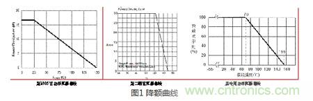 元器件的选择不仅需要考虑电应力,还要考虑热应力,并留有一定降额余量。降额等级可以参考《国家军用标准——元器件降额准则GJB/Z35-93》,该标准对各类元器件的各等级降额余量作了规定。设计一个稳定可靠的电源,实在不能任性,必须好好照着各元件的性子,设计、降额、验证。图 1为一些元件降额曲线,随着表面温度增加,其额定功率会有所降低。