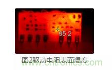 有时,电路参数和性能看似正常,但实际上隐藏很大的问题。如图 2所示,某电路基本性能没有问题,但在常温下,用红外热成像仪一测,不得了了,MOS管的驱动电阻表面温度居然达到95.2℃。长期工作或高温环境下,极易出现电阻烧坏、??樗鸹档奈侍狻?杉?,研发过程中使用热成像仪测试元器件的温度尤其重要,可及时发现并定位问题点。通过调整电路参数,降低电阻的欧姆热损耗,且将电阻封装由0603改成0805,大大降低了表面温度。