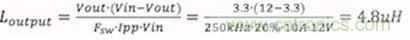 虽然输出电感并不是影响输出阻抗的主要因素,但使用合适的值也非常重要。电感值与纹波电流之间的关系是: