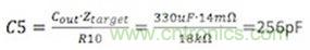 由于安装好的R10值非常接近18kΩ,因此可以保持不变。C5的选择原则是利用R3和C5形成的极点抵消输出电容和ESR组成的零点。
